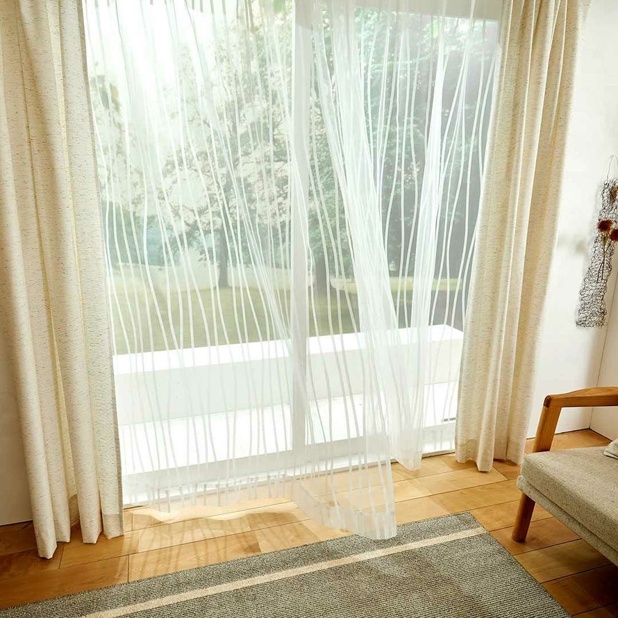 伸びやかに揺らぐウェーブ柄のシアーカーテンです。