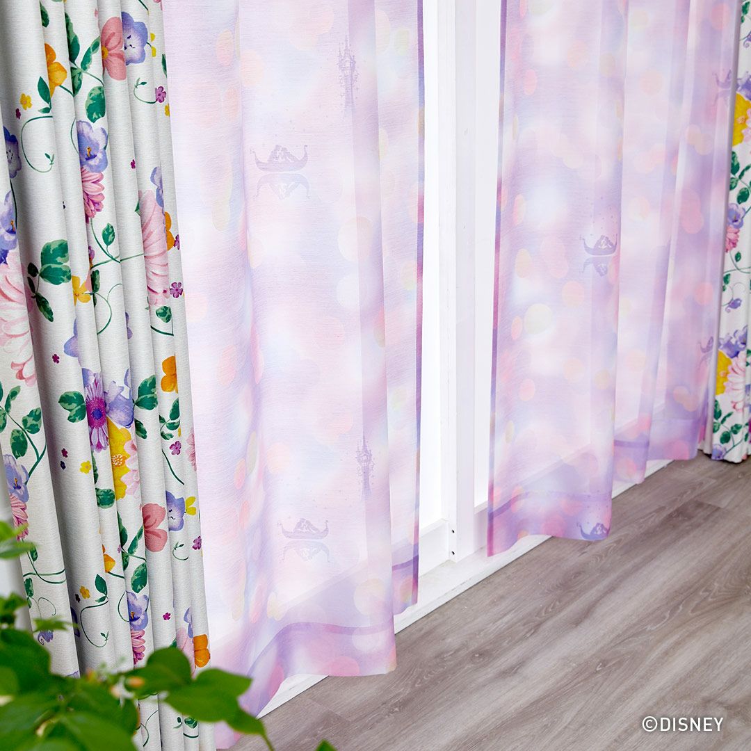 PRINCESS タングルド|遮光カーテン・ドレープ(厚地)|花柄|100×178cm(1枚入り)|全2色|遮光1、2級・洗える・形状記憶加工|日本製|ディズニー|DISNEY HOME SERIES